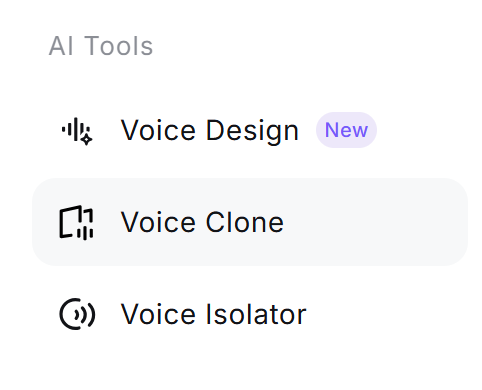 1. Cliquer sur « Voice Clone » dans le menu à gauche