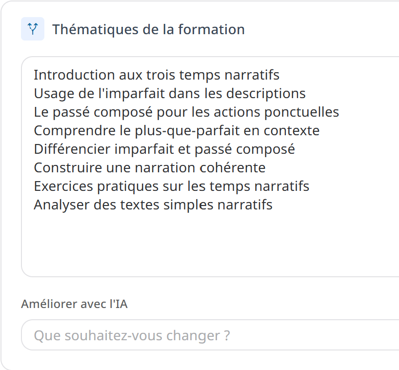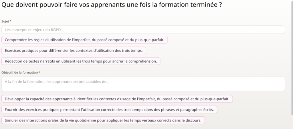 - à générer un déroulé de formation dans un ordre cohérent,