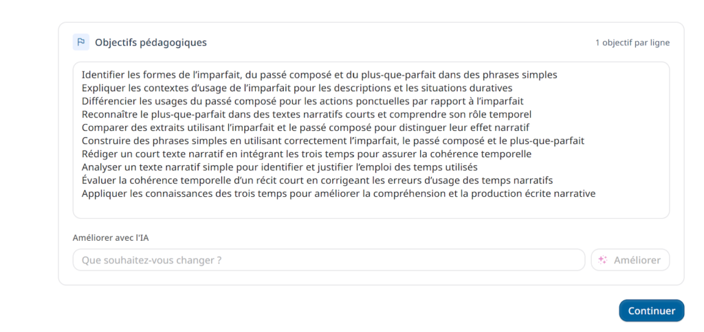 “Développer la capacité des apprenants à identifier les contextes d’usage de l’imparfait, du passé composé et du plus-que-parfait.”