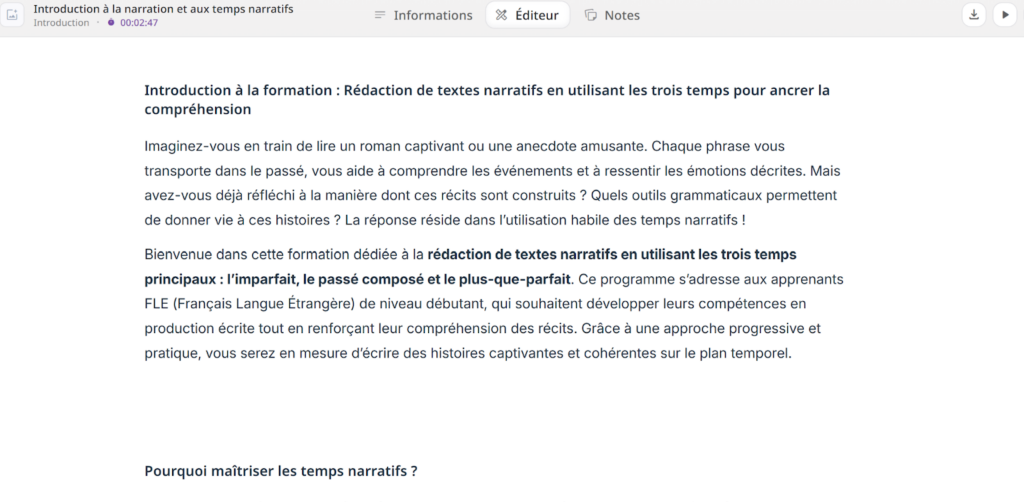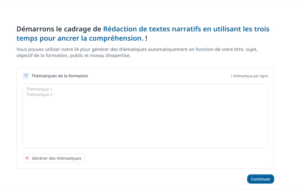 Jusqu’ici, l’IA s’est chargée du cadrage de la formation et de la création d’un premier déroulé de celle-ci.