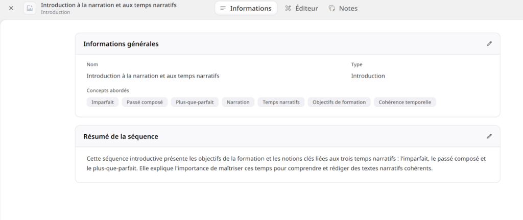 Dans « Introduction », je vois qu’un résumé de la « séquence » est déjà disponible.