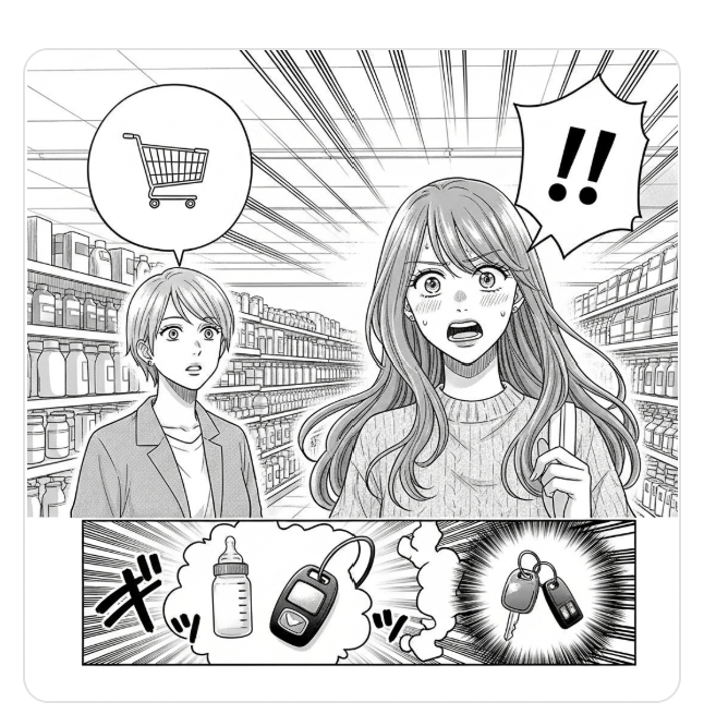 Des icônes ont été utilisées à la place du texte, ce qui empêche toute erreur d’écriture. Le style du manga est toujours respecté. L’émotion tragi-comique est encore présente. Il y a la référence au bébé avec l’image du biberon. Je valide l’image et l’insère alors au texte.